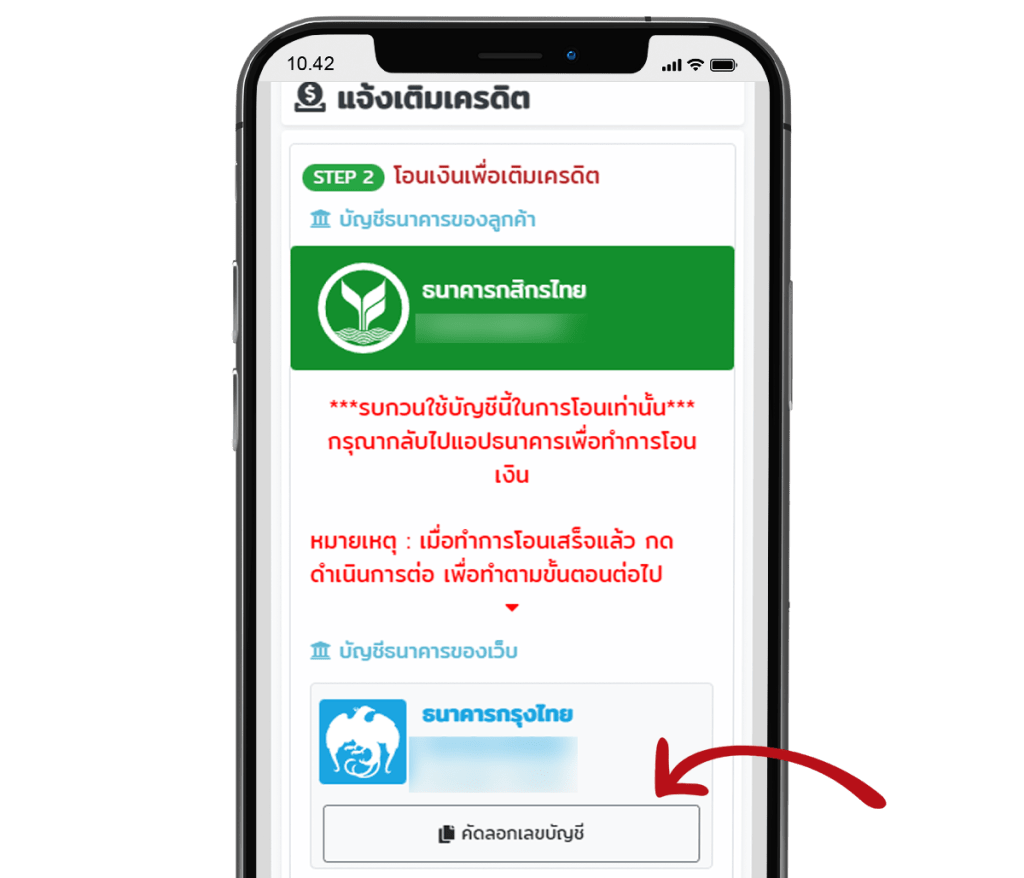 2.คัดลอกเลขบัญชีทางเว็บเพื่อทำการโอนเงินเข้า