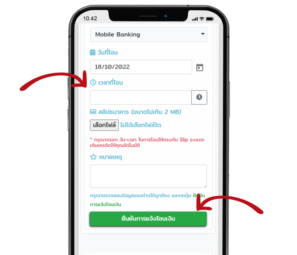 3.เมื่อโอนเงินแล้ว ให้ใส่วันที่ เวลา แล้วกดยินยัน